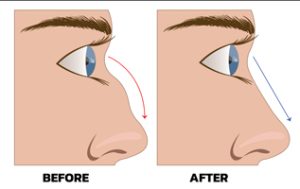 The second most common reason is dorsal hump prominence. If a patient looks at their side profile, the dorsal hump is the slope from the radix (i.e. Bridge) to the tip of their nose. On some people, the dorsal hump is very prominent. Patients bothered by this often want it to be smoothed out so that they have a much straighter or “ski sloped” dorsum.